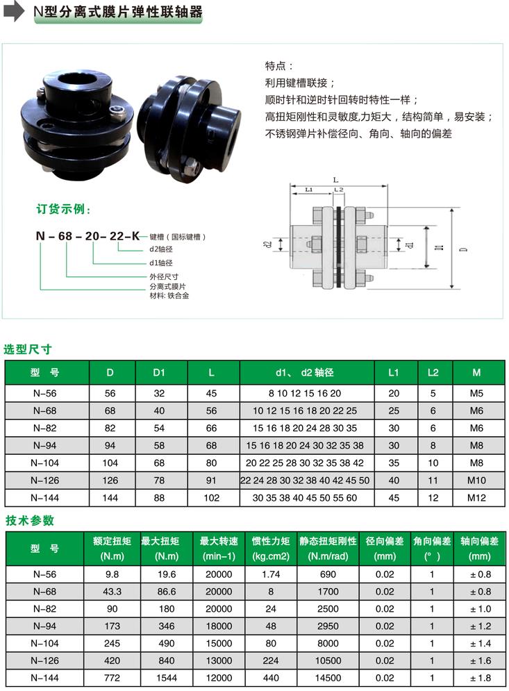 N型分離式膜片彈性聯軸器