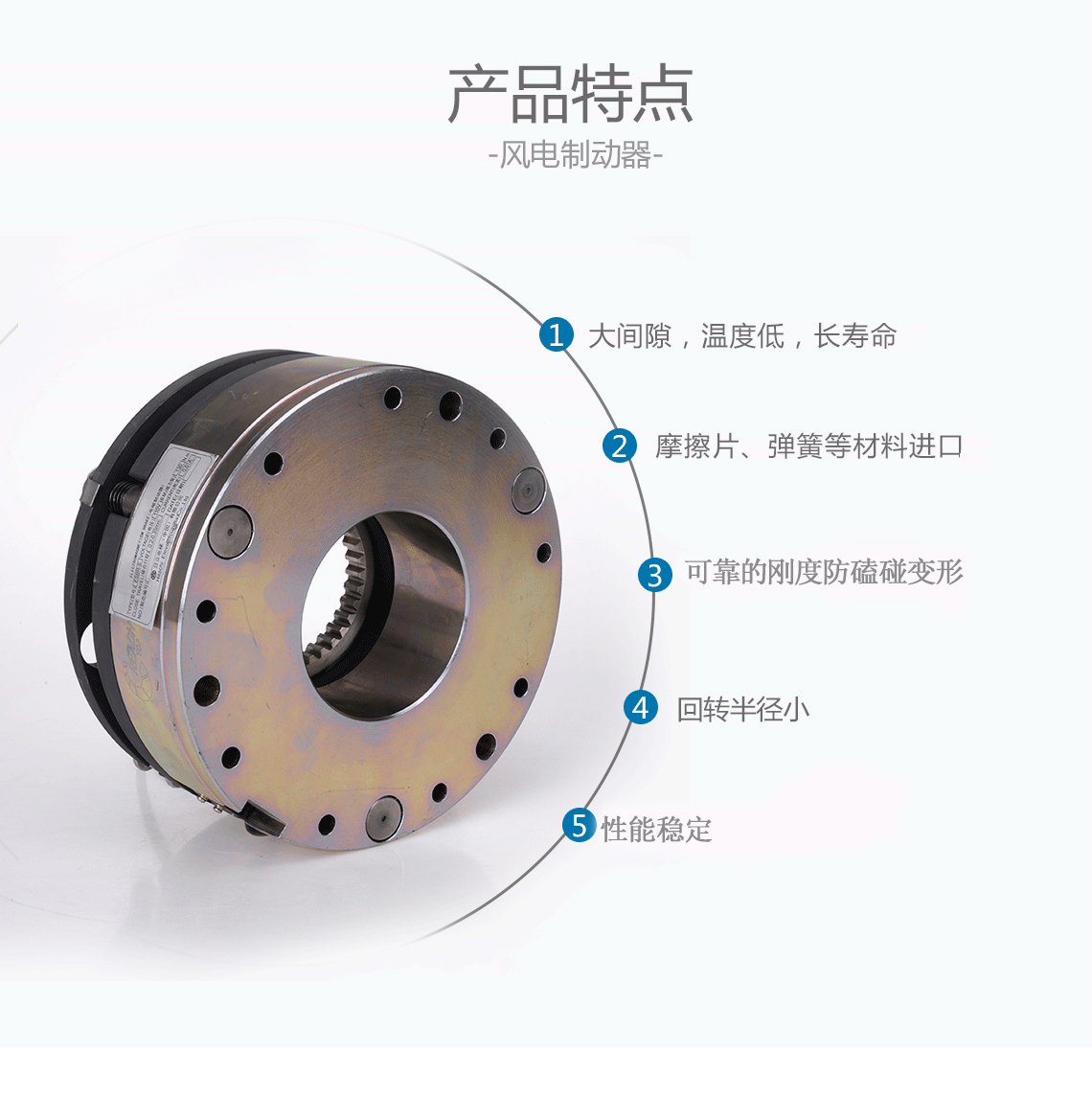 摩擦板,蓋板,停機時加熱器,開關組件為選配件,用戶可根據不同類型風力發電場實際使用情況選用。