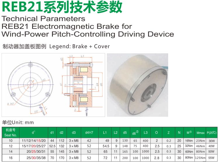 REB21係列電磁製動器 性能及特點: